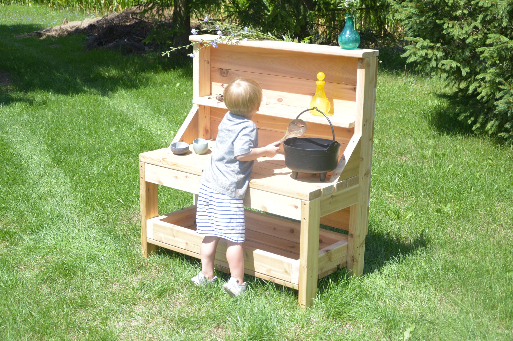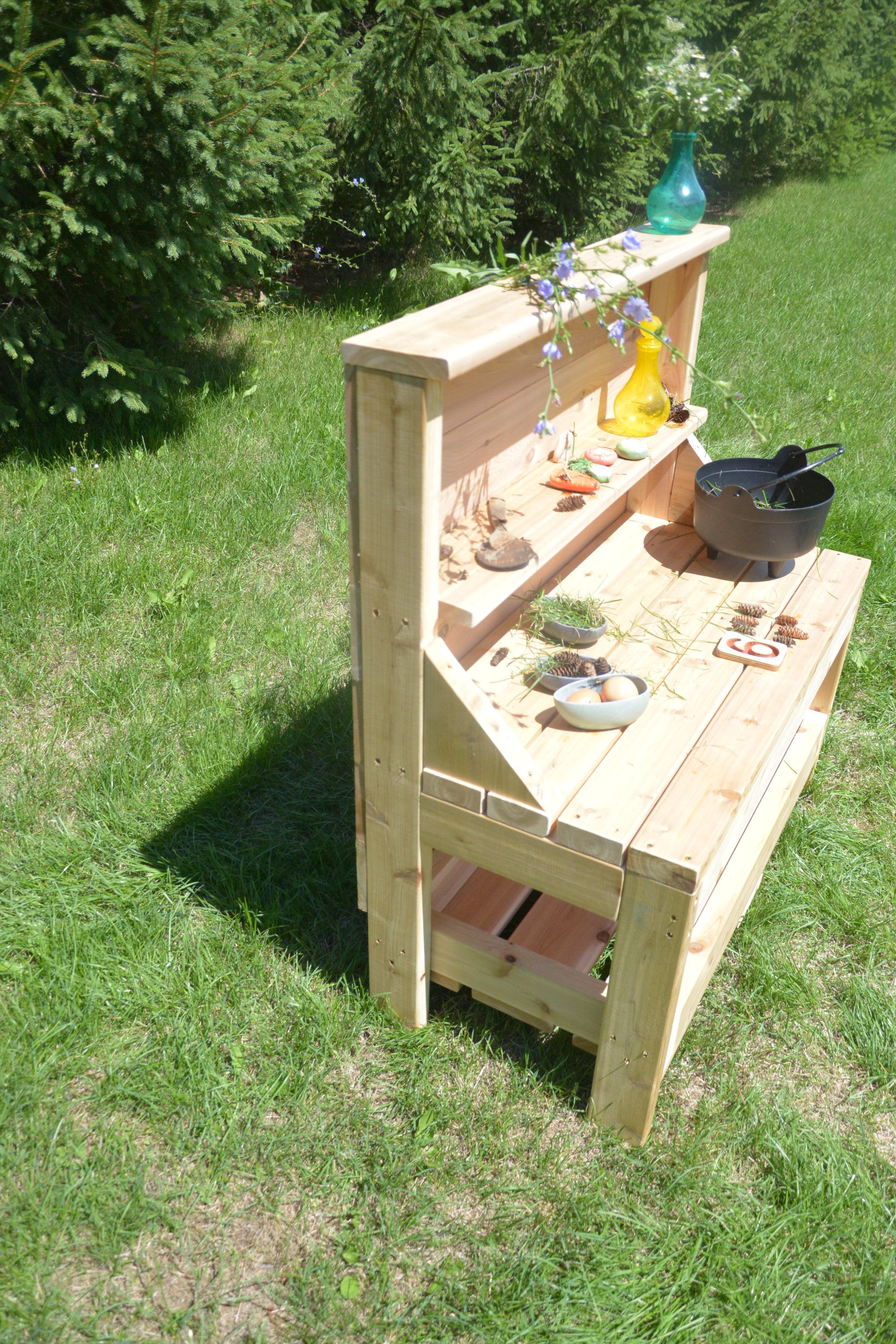 Inspire imaginative, sensory play outdoors with our Outdoor Creative Concoction Table. Crafted from natural North American cedar, this versatile table is perfect as a standalone station or paired alongside a mud kitchen. Built to weather any season, it transforms effortlessly into a wizard’s dresser, potion station, mud pie corner, or dramatic play focal point.