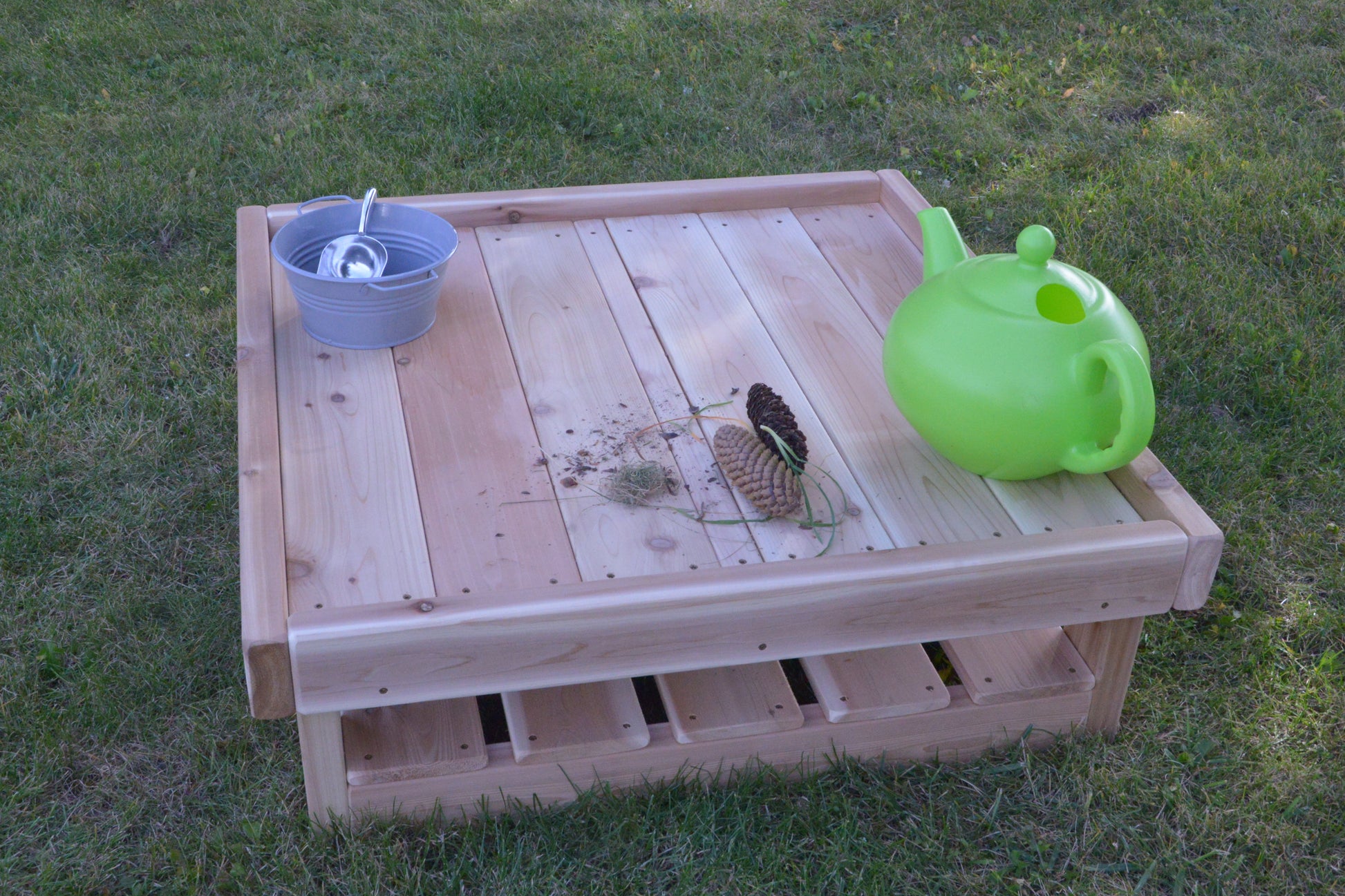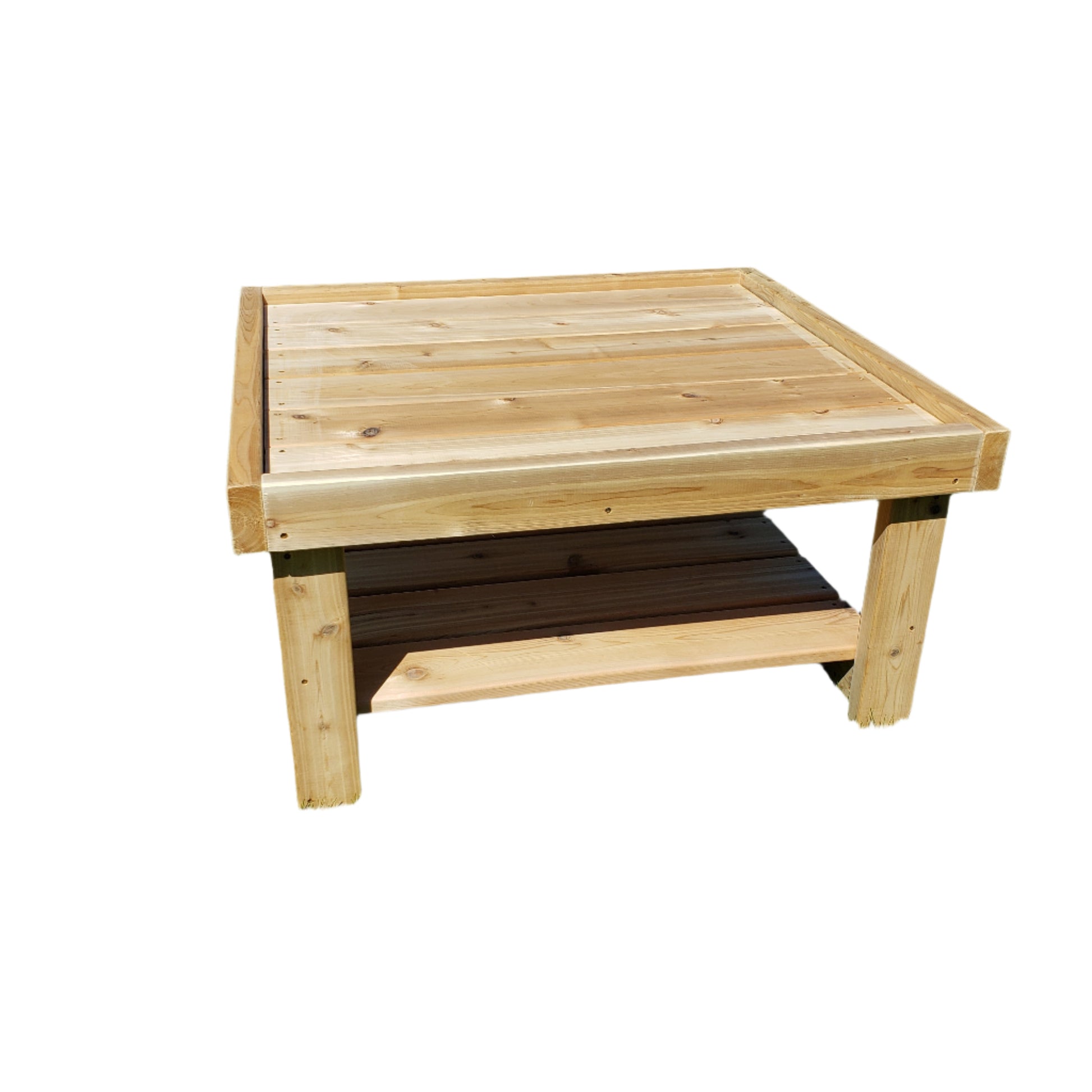 Boost collaboration and creativity with our Outdoor Wooden Square Tray Table, a versatile centerpiece built to support sensory fun, small-world setups, and loose-parts exploration. Crafted from durable Western Red Cedar, this table features a raised-edged tray surface and a handy lower shelf, making everything from mud-play mix-ins to art station organization easy and intentional.